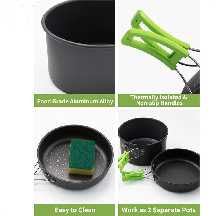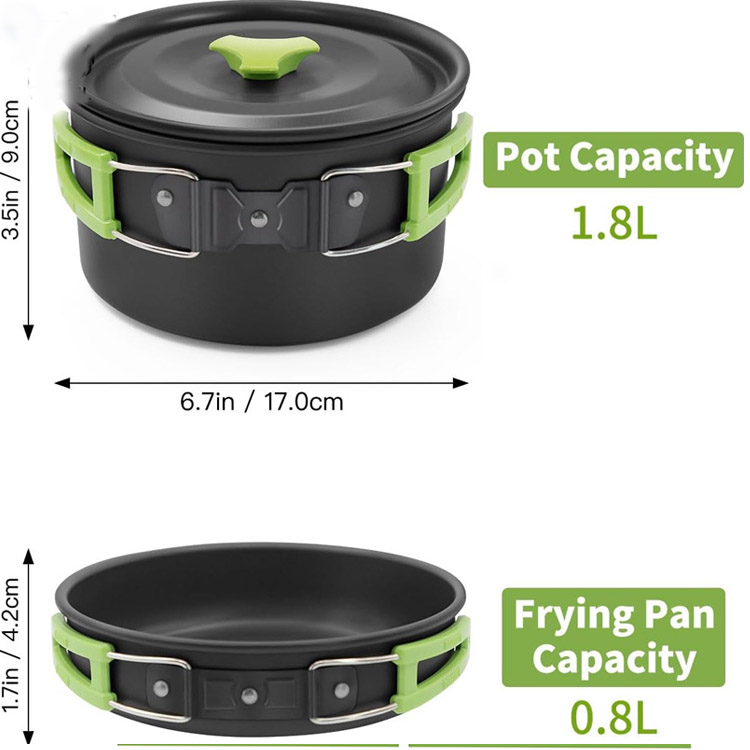 गैर-विषाक्त कोटिंग्स के साथ प्रीमियम एल्यूमीनियम मिश्र धातु से तैयार किया गया, कुकवेयर समान गर्मी वितरण सुनिश्चित करता है और भोजन तैयार करने के लिए सुरक्षित रहते हुए कैम्प फायर खाना पकाने का सामना करता है।