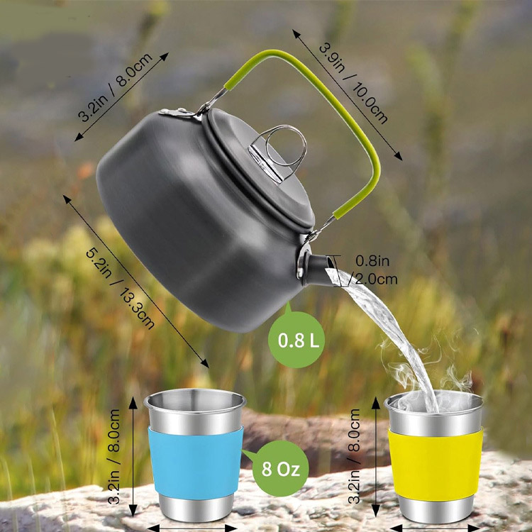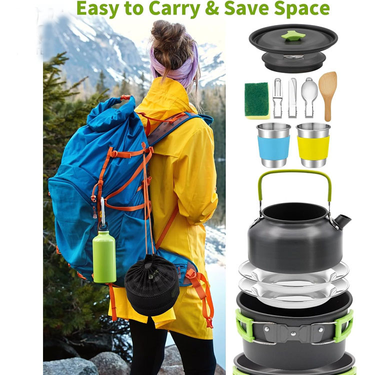 16पीसी कैम्पिंग कुकवेयर, कैम्पिंग कुकिंग सेट कैम्पिंग पॉट। आपका संपूर्ण आउटडोर रसोई समाधान। इस 16-पीस कैम्पिंग कुकवेयर सेट में बर्तन, पैन, कप, प्लेट और बर्तन शामिल हैं। व्यापक कैम्पिंग भोजन के लिए डिज़ाइन किया गया, यह जंगल में खाना पकाने और भोजन के लिए आवश्यक सभी चीजें प्रदान करता है।