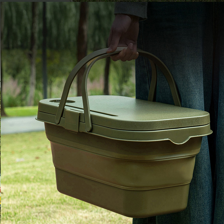 बास्केट आउटडोर कैम्पिंग हाइकिंग पिकनिक स्टोरेज कंटेनर। आउटडोर एडवेंचर्स के लिए आपका अंतिम पोर्टेबल संगठन समाधान। यह मल्टीफंक्शनल फोल्डेबल बास्केट एक स्टोरेज कंटेनर को एक अंतर्निर्मित टेबल सतह के साथ जोड़ती है। टिकाऊ प्लास्टिक से निर्मित, यह कैम्पिंग, लंबी पैदल यात्रा और पिकनिक आउटिंग के लिए बिल्कुल सही है।