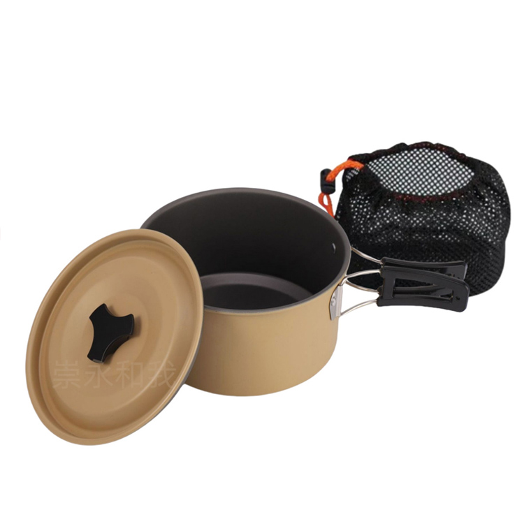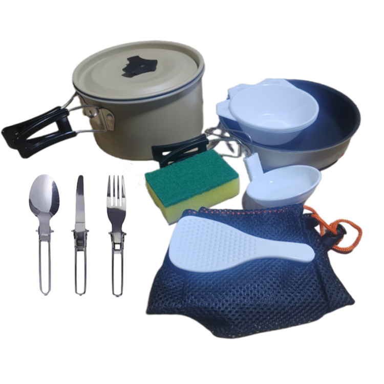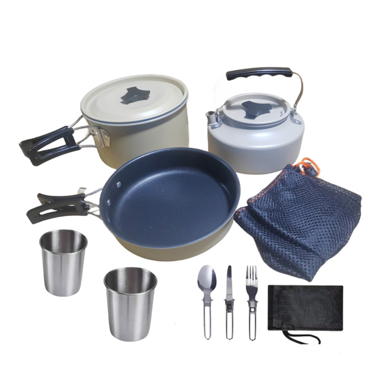 केतली पोर्टेबल कुकिंग पॉट सेट के साथ कैम्पिंग कुकवेयर सेट