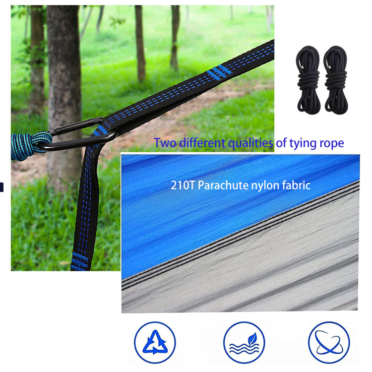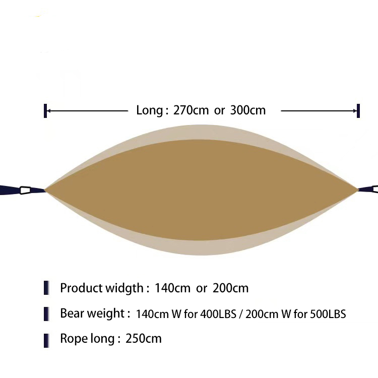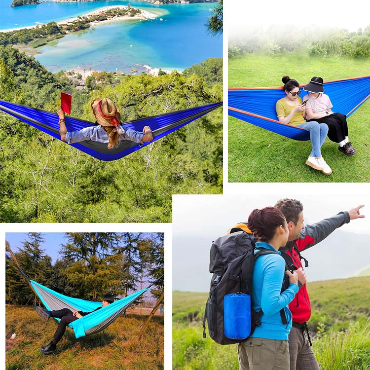 कैम्पिंग हैमॉक पोर्टेबल हैमॉक आउटडोर इंडोर सिंगल। इनडोर और आउटडोर दोनों आराम के लिए आपका अंतिम पोर्टेबल रिट्रीट। यह बहुमुखी झूला दो लोगों के लिए एकल रोमांच या आरामदायक क्षणों के लिए विशेष रूप से डिज़ाइन किया गया है। इसका हल्का, पैक करने योग्य डिज़ाइन इसे किसी भी कैम्पिंग ट्रिप या पिछवाड़े की सैर के लिए एक आवश्यक साथी बनाता है।