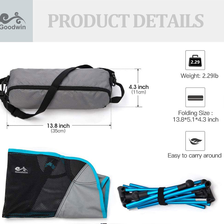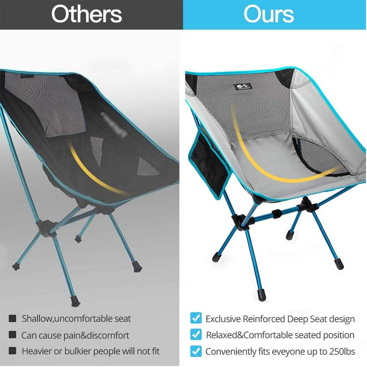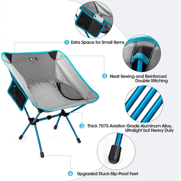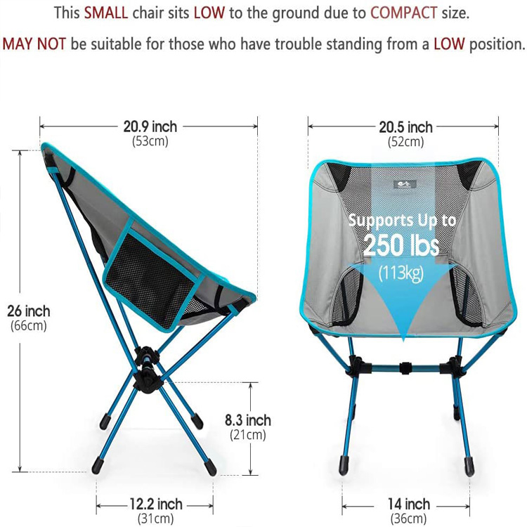 अल्ट्रा-लाइटवेट पोर्टेबल कॉम्पैक्ट फोल्डिंग कैम्पिंग चेयर। इस अल्ट्रा-लाइटवेट पोर्टेबल फोल्डिंग चेयर के साथ कहीं भी आराम का आनंद लें। यह कॉम्पैक्ट और अपने सुविधाजनक स्टोरेज बैग के साथ ले जाने में आसान है’यह समुद्र तट यात्राओं, कैम्पिंग, बैकपैकिंग, लंबी पैदल यात्रा, या किसी भी बाहरी साहसिक कार्य के लिए बिल्कुल सही है जहां आराम के साथ सुविधा मिलती है।