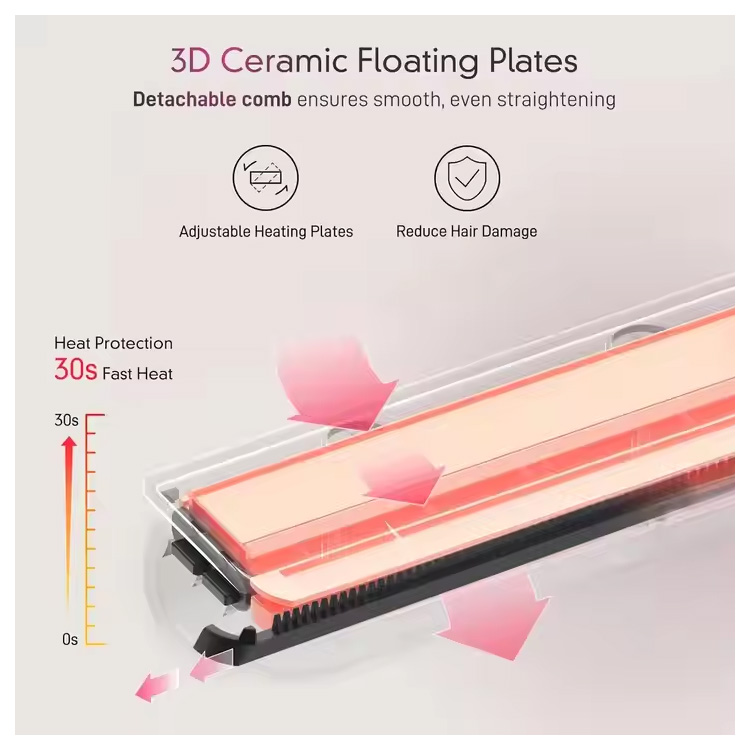 यह स्ट्रेटनर बालों की जड़ों में धीरे से प्रवेश करने के लिए इन्फ्रारेड हीट का उपयोग करता है, जिससे बालों को अंदर से बाहर तक गर्म किया जाता है। यह नमी को बनाए रखते हुए सतह की क्षति को कम करता है, जिसके परिणामस्वरूप बेहतर मजबूती और लोच के साथ चिकने, चमकदार बाल मिलते हैं।