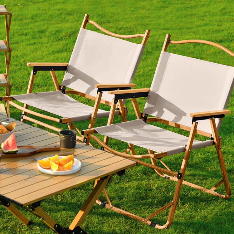 उच्च गुणवत्ता वाले हल्के स्टेनलेस स्टील फ़ोल्ड करने योग्य कैम्पिंग चेयर। आपका प्रीमियम आउटडोर बैठने का समाधान। यह उच्च गुणवत्ता वाली कैम्पिंग चेयर बेहतर आराम के लिए ठोस लकड़ी की रेलिंग के साथ एक हल्के स्टेनलेस स्टील फ्रेम को जोड़ती है। समुद्र तट की सैर और बगीचे में आराम के लिए बिल्कुल उपयुक्त, यह स्थायित्व और सुरुचिपूर्ण पोर्टेबिलिटी दोनों प्रदान करता है।