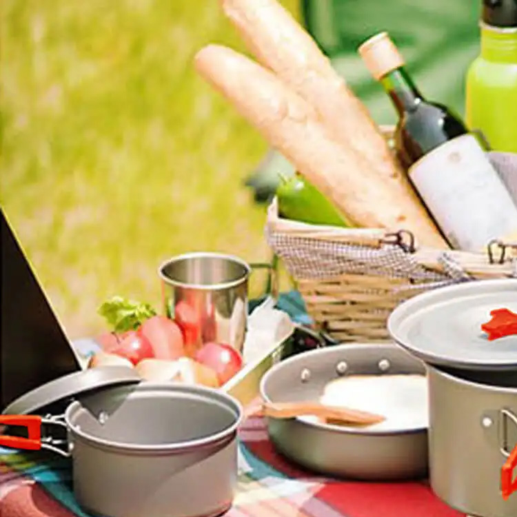 गर्मी प्रतिरोधी सिलिकॉन हैंडल से लैस, कुकवेयर खुली आग की लपटों या पोर्टेबल स्टोव पर खाना बनाते समय सुरक्षित हैंडलिंग सुनिश्चित करता है। एर्गोनोमिक डिजाइन बीहड़ बाहरी परिस्थितियों में भी एक आरामदायक, सुरक्षित पकड़ प्रदान करता है।
