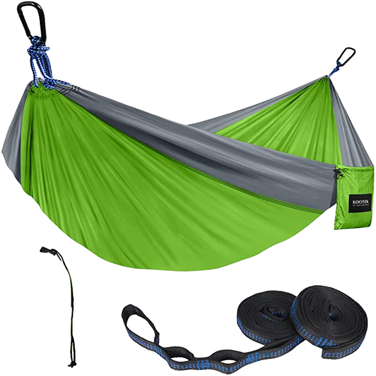 आउटडोर कैम्पिंग सिंगल पर्सन फैब्रिक पैराशूट हैमॉक। आउटडोर एडवेंचर्स के लिए आपका परफेक्ट सोलो एस्केप। इस एकल-व्यक्ति कैम्पिंग झूला में डार्क कैरबिनर और एडजस्टेबल ट्री स्ट्रैप्स के साथ टिकाऊ तफ़ता फैब्रिक निर्माण की सुविधा है। अधिकतम आराम और आसान सेटअप के लिए डिज़ाइन किया गया, यह जंगल में आराम के लिए आपका आदर्श साथी है।