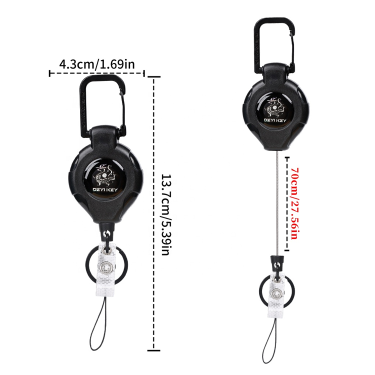 चिकनी वापस लेने योग्य तंत्र के साथ एक टिकाऊ 80 सेमी नायलॉन रस्सी की सुविधा है जो उलझने से बचाते हुए आरामदायक विस्तार की अनुमति देती है, जिससे बाहरी गतिविधियों के दौरान आपकी चाबियाँ सुरक्षित और सुलभ रहती हैं।