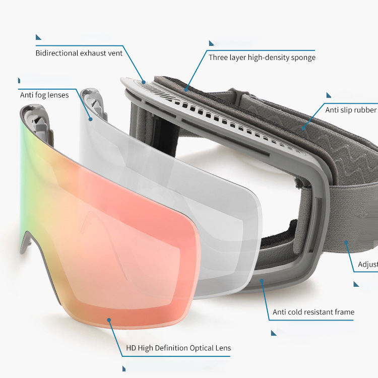 पेशेवर निर्माता स्की गॉगल्स एंटी-स्लिप चेंजेबल। शीतकालीन खेलों के लिए आपकी अंतिम पेशेवर-ग्रेड दृष्टि सुरक्षा। इन निर्माता-प्रत्यक्ष स्की गॉगल्स में विनिमेय लेंस टुकड़ों के साथ एक एंटी-स्लिप डिज़ाइन है। उन्नत डबल-लेयर एंटी-फॉग सिस्टम क्रिस्टल-क्लियर दृश्यता सुनिश्चित करता है, जबकि हेलमेट-संगत निर्माण सुरक्षित, आरामदायक प्रदर्शन प्रदान करता है।