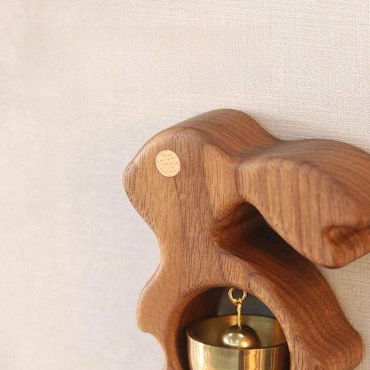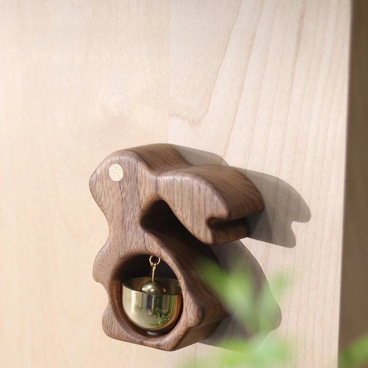 ठोस लकड़ी खरगोश फ्रिज मैग्नेट हस्तनिर्मित पीतल की घंटी