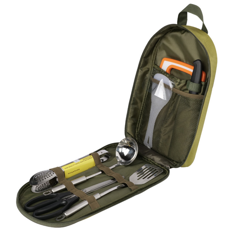 आउटडोर खाना पकाने के लिए आपको जो कुछ भी चाहिए वह एक पोर्टेबल बैग में पूरी तरह से व्यवस्थित होता है, जिससे आपकी यात्राओं के लिए अलग-अलग कैंपिंग उपकरण और सहायक उपकरण इकट्ठा करने की परेशानी खत्म हो जाती है।