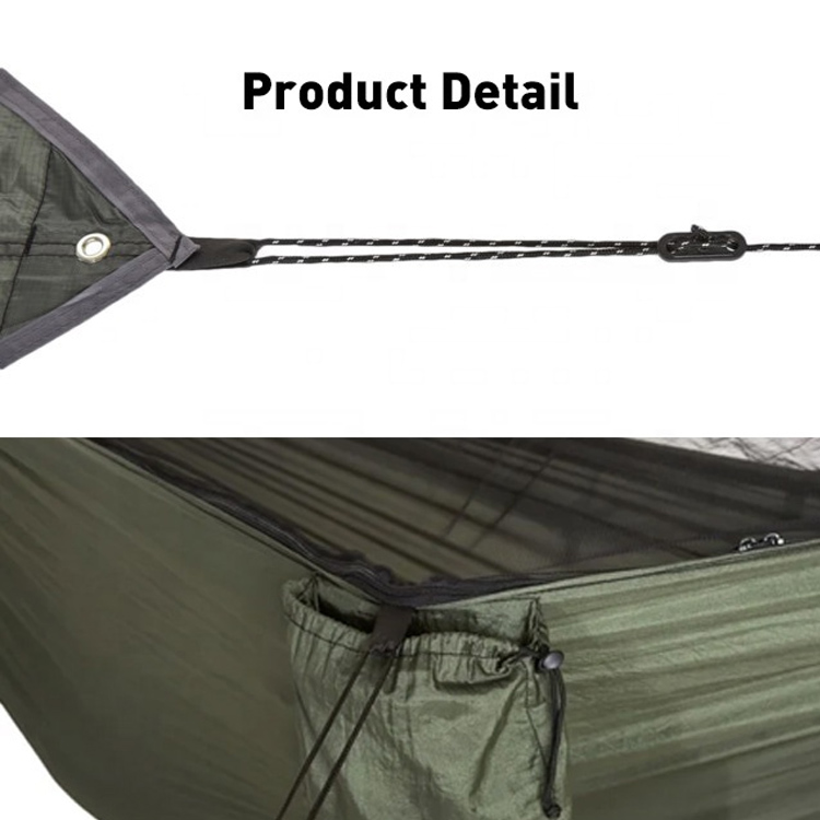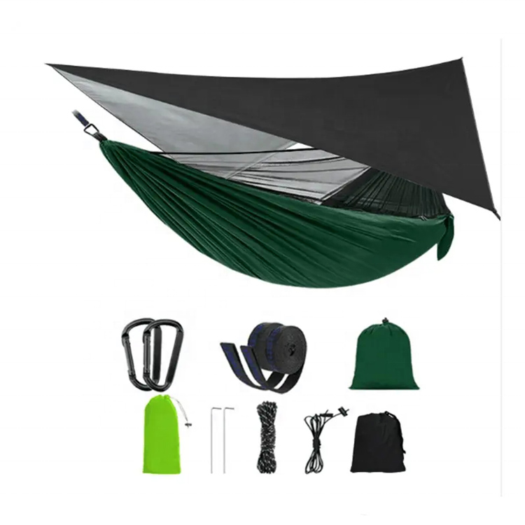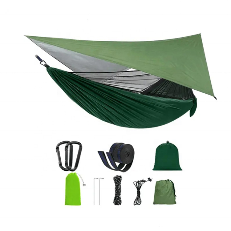 अल्ट्रा लाइट स्विंग कैम्पिंग मच्छरदानी रेन फ्लाई हैमॉक। आउटडोर एडवेंचर के लिए आपका बेहतरीन ऑल-वेदर हैमॉक समाधान। यह अल्ट्रा-लाइट सिस्टम एकीकृत मच्छरदानी और सुरक्षात्मक रेन फ्लाई के साथ एक आरामदायक स्विंग झूला जोड़ता है। कैम्पिंग के लिए बिल्कुल उपयुक्त, यह विभिन्न परिस्थितियों में बग-मुक्त विश्राम और शुष्क आराम सुनिश्चित करता है।
