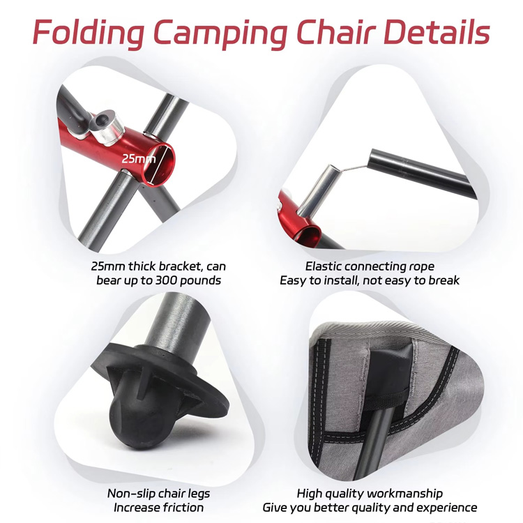 अल्ट्रालाइट कैम्पिंग चेयर पोर्टेबल फोल्डिंग बैकपैकिंग चेयर। आउटडोर एडवेंचर्स के लिए आपका अंतिम पोर्टेबल सिंहासन। इस अल्ट्रालाइट कैम्पिंग चेयर में एक कॉम्पैक्ट फोल्डिंग डिज़ाइन है जो अपने कैरी बैग में पैक हो जाता है। इनोवेटिव मिनी मून आकार न्यूनतम वजन के साथ बेहतर आराम का संयोजन करता है, जो इसे बैकपैकिंग और यात्रा के लिए बिल्कुल सही बनाता है।